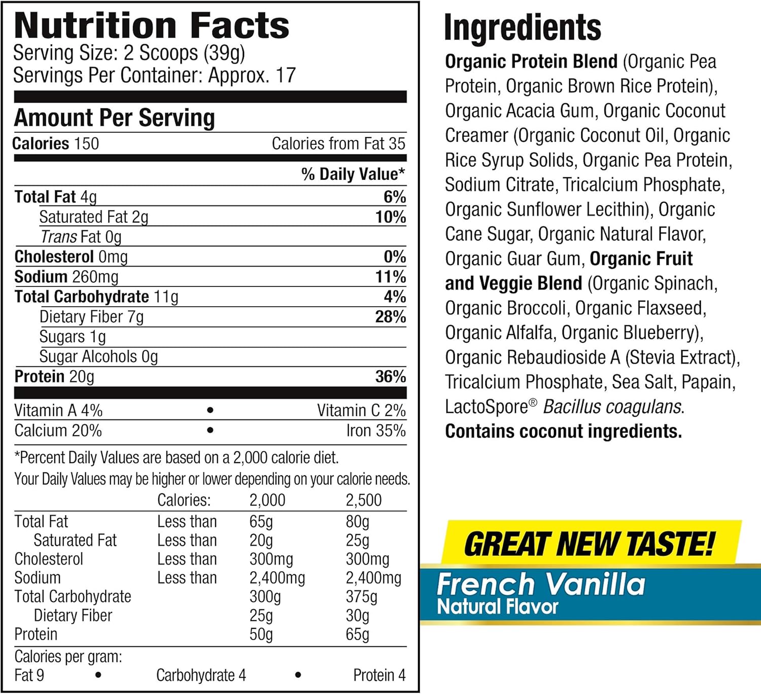 Nutrition Facts for Herbalife Formula 1 Healthy Meal Shake Mix - French ... Herbalife Formula 1 Healthy Meal Shake Mix - French Vanilla Nutrition Facts Serving Size scoops 2 scoops = 25g Amount Per Serving 90 Calories % Daily Value* 2% Total Fat 1g 0% Saturated Fat 0g Trans Fat 0g 0% Cholesterol 0mg 4% Sodium 95mg 4% Total Carbohydrate 13g 11% Dietary Fiber 3g Sugars 9g Protein 9g 6% Calcium 80mg 15% Iron 2.7mg