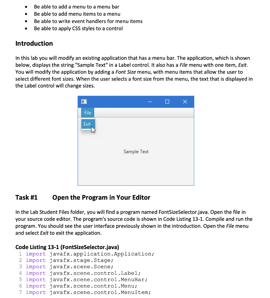 Javafx change label text. Change Label text in Button click event : Label « JavaFX « Java Using Label to display Text: 2. Set new value to Label: 3. Set Font for Label: 4. Set Label Text color: 5. Using Rotate to create vertical label: 6. Move a Label by using setTranslateY: 7. Wrap a Label: 8. Scale a Label: 9. Label mouse in and out event: 10. Adding Image to Label How to change color of text in JavaFX Label - Stack Overflow Theoretically you could apply the style "-fx-text-fill: " + colorName.toLowerCase (), but that relies on you using the exact same strings as the css color names; furthermore for #00ff00 you need to use lime not green. Another option would be setting the slider values accordingly and retrieving the color, but I'm not sure why this would be ... JavaFX | Label - GeeksforGeeks Label is a part of JavaFX package . Label is used to display a short text or an image, it is a non-editable text control. It is useful for displaying text that is required to fit within a specific space, and thus may need to use an ellipsis or truncation to size the string to fit. Labels also are useful in that they can have mnemonics which, if ... JavaFX Label - Jenkov.com Changing the Text of a Label. You can change the text of a label using its setText() method. This can be done while the application is running. Here is an example of setting the text of a JavaFX Label: label.setText("New label text"); See the JavaFX Button tutorial for an example that changes the text of a label when a button is clicked.