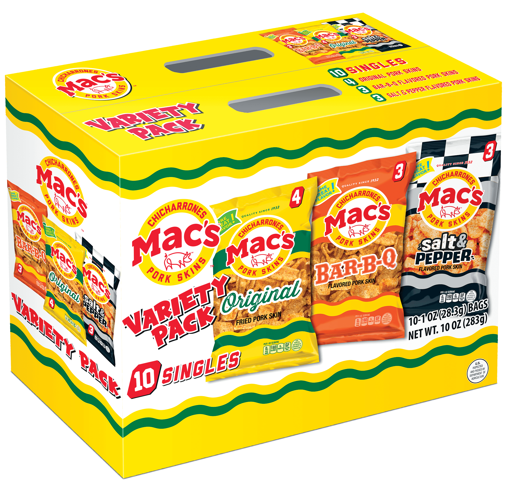 Mac's Fried Pork Skins, Original - Fooducate Personalized health review for Mac's Fried Pork Skins, Original: 80 calories, nutrition grade (C plus), problematic ingredients, and more. ... Minimally processed products usually contain a very short ingredient list. For the most part, they are comprised of simple ingredients that you would have found in your great grandmother's kitchen 100 ...