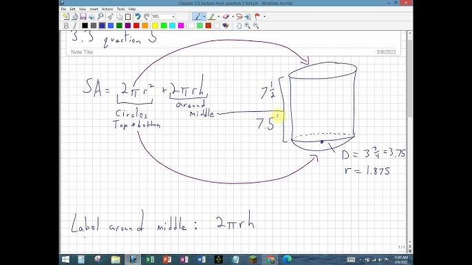 Surface Area Formulas - math Surface Area = Areas of top and bottom +Area of the side Surface Area = 2(Area of top) + (perimeter of top)* height Surface Area = 2(pi r 2) + (2 pi r)* h In words, the easiest way is to think of a can. The surface area is the areas of all the parts needed to cover the can. That's the top, the bottom, and the paper label that wraps around the ...