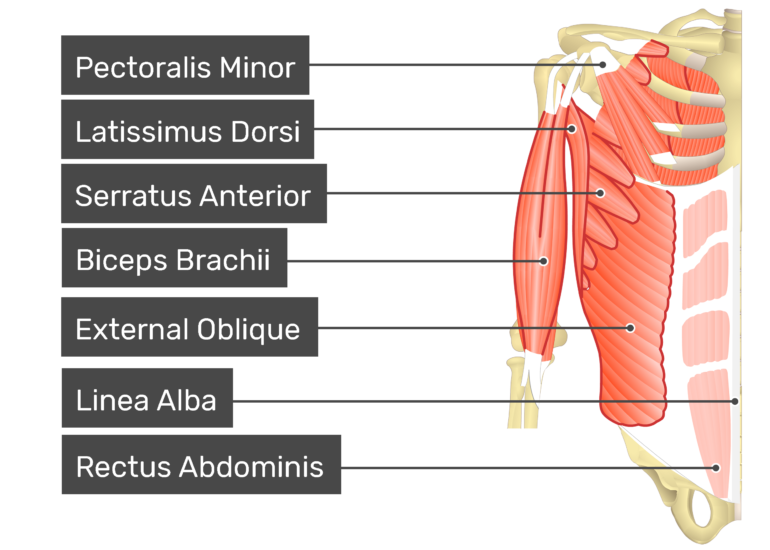 Abdominal muscles labelled