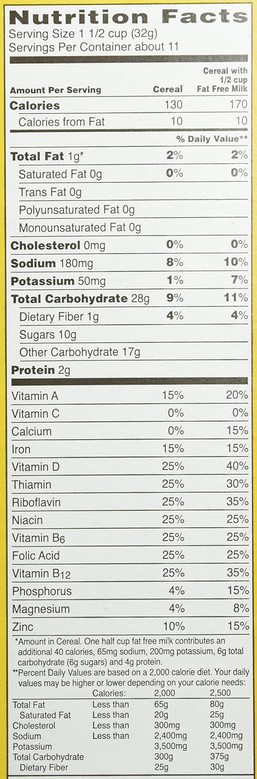 Calories in Post Honey-Comb Cereal and Nutrition Facts - FatSecret Nutrition summary: There are 160 calories in 1 3/4 cups (40 g) of Post Honey-Comb Cereal. Calorie breakdown: 6% fat, 89% carbs, 5% protein. Sugar Content of 50 Popular Breakfast Cereals | Stacker Post's Honeycomb Cereal has been a fan favorite for more than 30 years, with kids and adults alike chowing down on the crunchy, honeycomb-shaped corn and oat cereal. ... A bowlful of the cereal contains 110 calories and 22 grams of carbohydrates, half of which are derived from sugar. 41 / 50. Like_the_Grand_Canyon // Flickr #10. Christmas Crunch Cereals ready-to-eat, Honeycomb Cereal, POST nutrition facts and analysis. Cereals ready-to-eat, POST Raisin Bran Cereal Cereals ready-to-eat, GRAPE-NUTS Flakes, POST Cereals ready-to-eat, Honeycomb Cereal, POST contains 126 calories per 32 g serving. This serving contains 0.9 g of fat, 1.9 g of protein and 28 g of carbohydrate. The latter is 10 g sugar and 1 g of dietary fiber, the rest is complex carbohydrate. Honey Comb Cereal 12.5 oz (354 g) | Rite Aid Excellent source of vitamin D. Amount and % Daily Value per Serving: 130 calories (7%), 0 g saturated fat (0%), 180 mg sodium (8%), 10 g sugars (A % daily value for sugars has not been established), 750 IU vitamin A ... Enjoy the big honey taste and big bite of Honeycomb Cereal! Each Serving Helps Start the Day in a Healthy Way: An excellent ...
