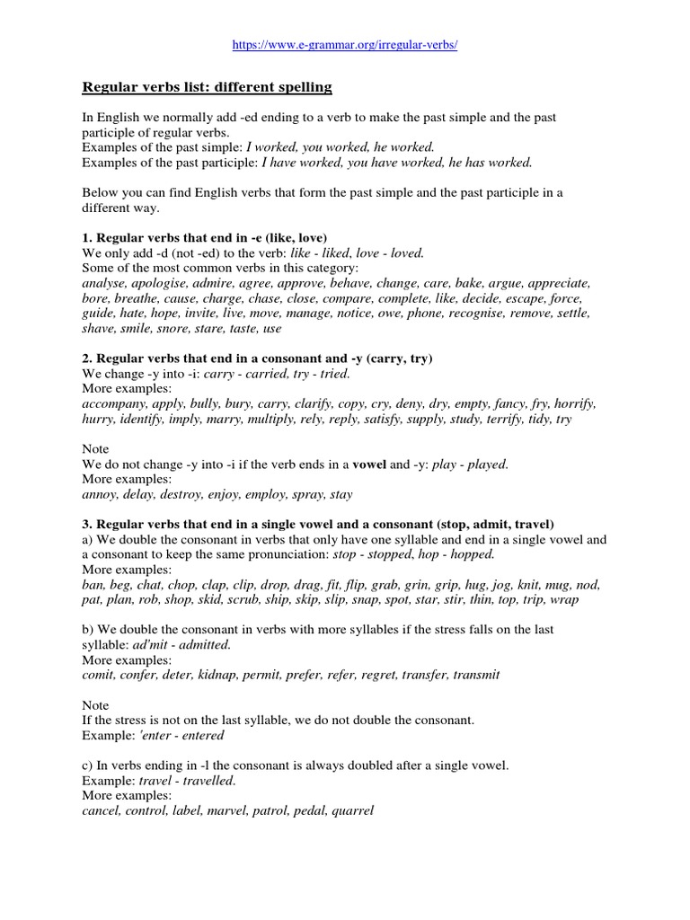 Irregular Past Tense Verbs | 75+ Important Irregular Verbs List Apr 23, 2019 · Irregular Past Tense Verbs! List of Irregular Verbs in English. The following lesson is list of 75+ popular irregular verbs for English learners used in modern English with ESL infographics. Conjugation play | Conjugate verb play | Reverso Conjugator … Conjugate the English verb play: indicative, past tense, participle, present perfect, gerund, conjugation models and irregular verbs. Translate play in context, with examples of use and definition. Grammatical tense - Wikipedia In grammar, tense is a category that expresses time reference. Tenses are usually manifested by the use of specific forms of verbs, particularly in their conjugation patterns.. The main tenses found in many languages include the past, present, and future.Some languages have only two distinct tenses, such as past and nonpast, or future and nonfuture.There are also tenseless …