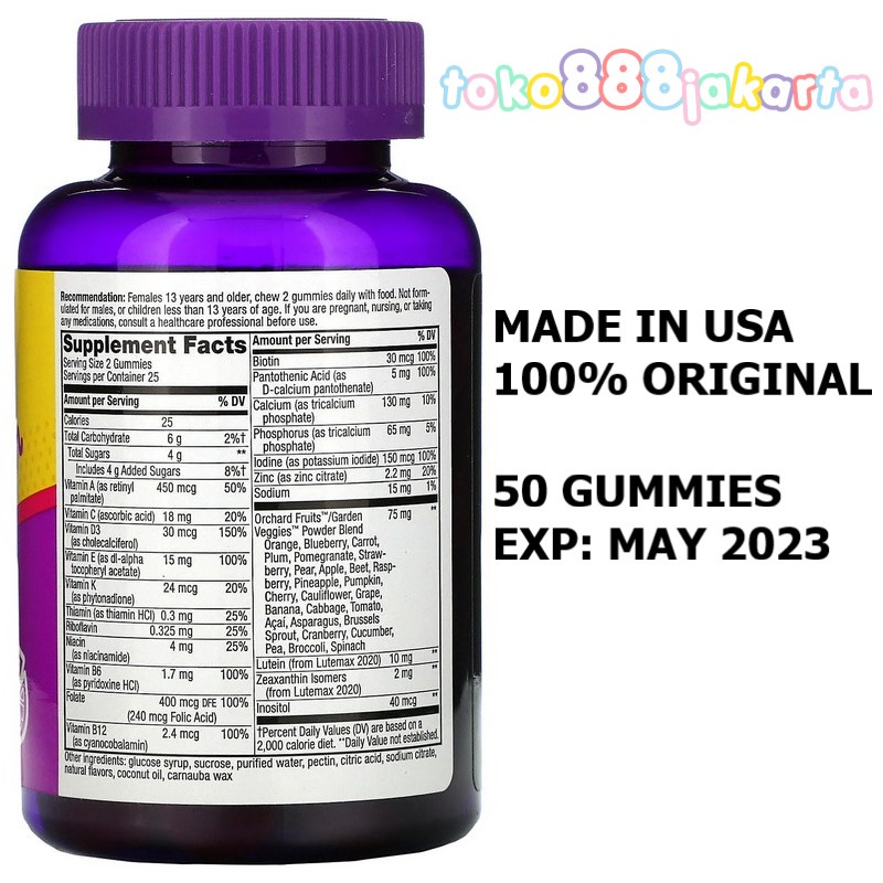 Alive Supplements Review - Supplement Police Products by Alive that are made specifically for women include: Women's Energy Includes 20 vitamins and minerals Once a day tablet Has B-vitamins, boron, and lutein to increase daily energy Women's Gummy Includes 16 vitamins and minerals Uses a blend of Orchard Fruits™/ Garden Veggies™ Gluten-free Women's 50+ Once a day tablet