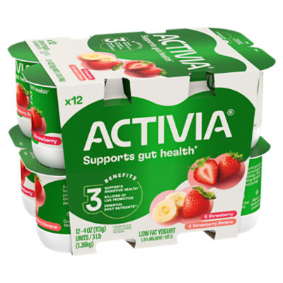 Activia Probiotic Strawberry & Blueberry Variety Pack Yogurt ... Every serving of Activia comes with four live and active cultures, plus Bifidus, our exclusive probiotic strain. With our wide and delicious selection of probiotic yogurts and smoothies, we make it easy to help support your gut as part of a healthy lifestyle. Activia Probiotic Strawberry & Blueberry Variety Pack Yogurt, 4 Oz. Cups, 12 Count: