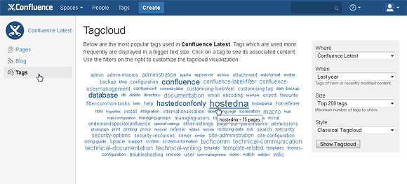 Confluence search by label. support.atlassian.com › confluence-cloud › docsUse labels to organize pages and attachments | Confluence ... Select the + Add label button at the bottom of the page, above Related pages, reactions and comments). This will open the Labels dialog box. Select the label you’d like to add from the list or create a new label using the text you entered. Repeat steps 1-3 to find and add additional labels to your page. When you're editing a page › software › confluenceSet up your site and spaces | Atlassian | Atlassian If you add that label to every page you use to capture meeting notes, then you can browse all your meeting notes – within a single space or across your entire Confluence site – just by selecting the label. You can also display all pages with the same label on a page or search content by label to find relevant pages and attachments more easily. confluence.atlassian.com › doc › chart-macroChart Macro | Confluence Data Center and Server 7.20 ... Range Axis Label Angle: none: Angle for the range axis label in degrees. Domain Axis Lower Bound: none: Only applies to XY plots. Domain axis lower bound. For a date axis, this value must be expressed in the date format specified by the Date format parameter. Domain Axis Upper Bound: none: Only applies to XY plots. Domain axis upper bound. developer.atlassian.com › cloud › confluenceThe Confluence Cloud REST API - Atlassian You can use the Confluence REST API to get, update, and delete content properties. To learn more, see Content properties in the REST API. CQL: The Confluence Query Language (CQL) allows you to perform complex searches for content using an SQL-like syntax in the search resource. To learn more, see Advanced searching using CQL.