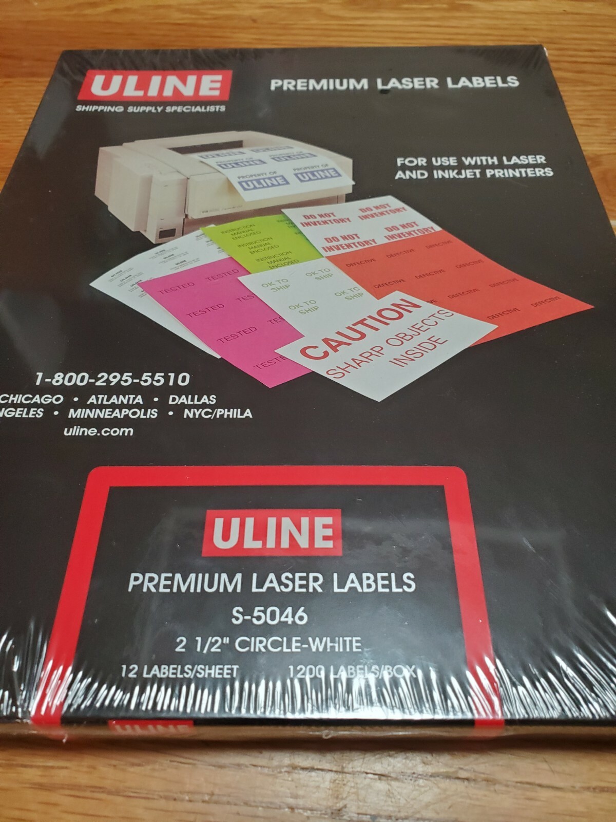Circle Labels - ULINE Search Results Search Results for 'circle labels' · Inventory Labels · Laser Labels · Mailing Labels · Retail Tags and Labels · Mighty Line® Deluxe Safety Tape · Label Dispensers. Uline Circle Laser Labels - White, 2 1/2" S-5046 Heat resistant adhesive reduces jamming in your laser or inkjet printer. High quality white laser labels - Will work in laser and inkjet printers. Uline Circle Laser Labels - White, 1" S-8075 Heat resistant adhesive reduces jamming in your laser or inkjet printer. High quality white laser labels - Will work in laser and inkjet printers. Amazon.com: Uline Labels Uline Circle Laser Labels - Round, White, 2 1⁄2" (1200 Labels/Box) S-5046 2 $4299 FREE delivery Feb 10 - 14 Or fastest delivery Feb 9 - 10 Another way to buy $4769 FREE delivery Mon, Feb 13 Or fastest delivery Fri, Feb 10 Only 5 left in stock - order soon.