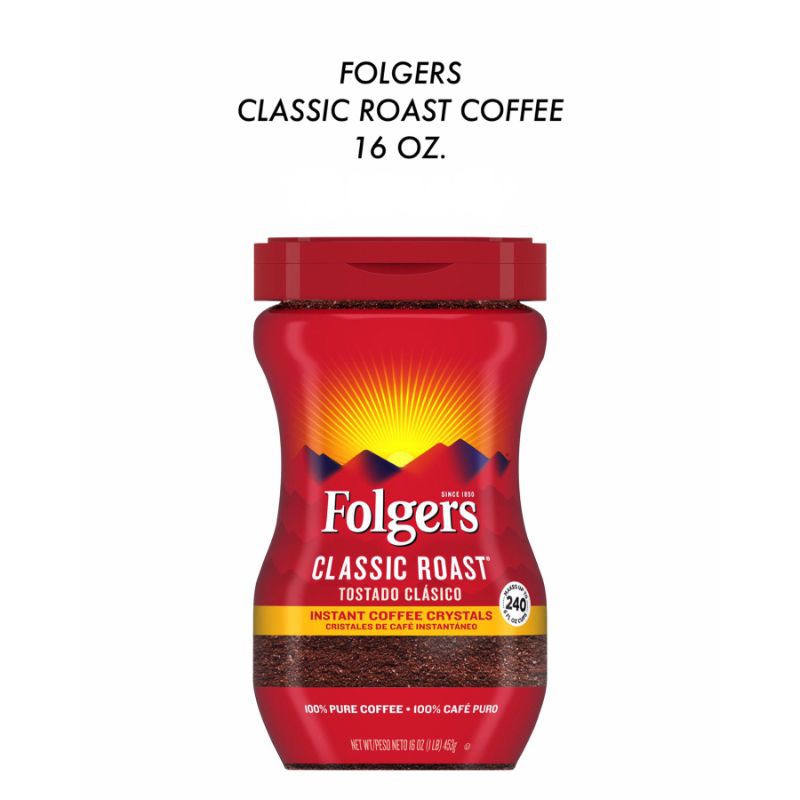 Calories in Folgers Classic Roast Instant Coffee Crystals - Fitbit Classic Roast Instant Coffee Crystals from Folgers Additional Serving Size Recommendations Nutrition Facts Serving Size 178 grams Amount Per Serving Calories 2 Calories from Fat 0 % Daily Value * Total Fat 0g 0% Saturated Fat 0g 0% Trans Fat 0g Cholesterol 0mg 0% Sodium 4mg 0% Potassium 0mg 0% Total Carbohydrate 0g 0% Dietary Fiber 0g 0% Sugars