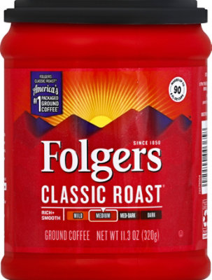 Folgers Classic Medium Roast Ground Coffee - 25.9oz : Target Contains one (1) 25.9 ounce AromaSeal canister of Folgers Classic Roast ground coffee. Fresh aroma and rich, smooth flavor that have been brewing for generations. Rich, pure medium roast coffee in a special AromaSeal canister for freshness. The Best Part of Wakin' Up in its most famous form. Works with a wide range of home coffee makers, and ...