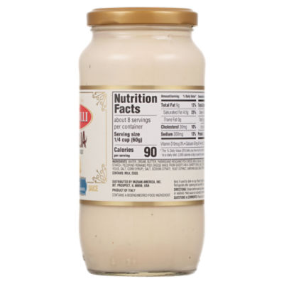 Bertolli alfredo sauce nutrition label. Bertolli Alfredo Sauce: Calories, Nutrition Analysis & More | Fooducate Nutrition Serving Size: 1/4 cup (60g) Amount per Serving My Daily Value Calories 90 Kcal 5% Total Fat 9 g 14% Saturated Fat 4.5 g 26% Trans Fat 0 g 0% Cholesterol 30 mg 10% Sodium 300 mg 13% Potassium 25 mg 1% Total Carbohydrate 2 g 1% Dietary Fiber 0 g 0% Sugars 0 g 0% Added Sugars 0 g 0% Protein 1 g 2% Calcium 47 mg 5% Iron 0.36 mg 2% Calories in Bertolli Alfredo Sauce - recipal.com Nutrition facts label and information for Bertolli Alfredo Sauce - Per 100 grams: 180.328 calories, 16.393g fat, 4.918g carbohydrate, 3.279g protein. ... Nutrition Label Software FDA and CFIA compliant nutrition labels. Inventory Lot tracing, inventory management, and production planning. Hire a Labeling Expert Label reviews and consulting from ... Bertolli Alfredo Sauce: Calories, Nutrition Analysis & More | Fooducate For most people, this means less than 50 net carbs per day. Net carbs are calculated by subtracting fiber from total carbs. Example: A product with 26 grams of total carbohydrates and 9 grams of fiber will have 17 grams net carbs. Math equation: 26 - 9 = 17 IMPORTANT: Net carbs are per serving. Make sure you know your serving size or else you ... Product Detail Page | Cub 110kcal Calories 10g Total Fat 1g Total Sugars 410mg Sodium Nutrition Facts servings pr container Amount Per Serving Calories 110 % Daily Values * Total Fat 10g 15 % Saturated Fat 5 g 25 % Trans Fat 0 g Cholesterol 40mg 13 % Sodium 410mg 17 % Total Carbohydrate 2g 1 % Dietary Fiber 0 g % Total Sugars 1 g Protein 2g 0 %